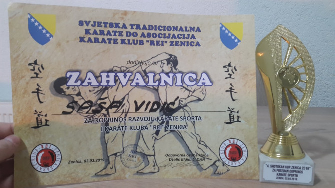 „Naš klub dobio je i posebnu čestitku za ostvarni uspjeh i disciplinu u izvođenju kata od strane vrhovnog sudije Evera Čakićija karate majstora crni pojas 8.dan, koji je ujedno i tehnički direktor WTKF u Njemačkoj, te je klub imao čast napraviti i zajedničku sliku“, ističu iz ovog derventskog kolektiva.