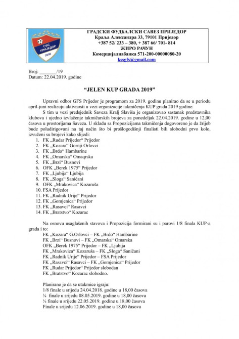 U srijedu počinju prve utakmice ovogodišnjeg Jelen kupa GFS Prijedor ,u kom učestvuje 14 ekipa.