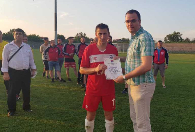 Miodrag Đurić, predsednik OFS Modriča, uručio je priznanje Vranjaku za učešće u finalu, a pobednički pehar ekipi Sloge.