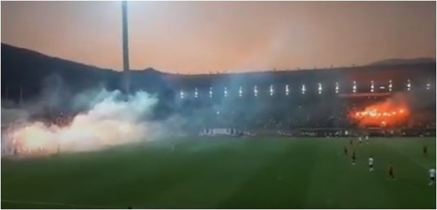 Razlog je bakljada, nakon koje je klupa "Plavih" zasuta tvrdim predmetima.