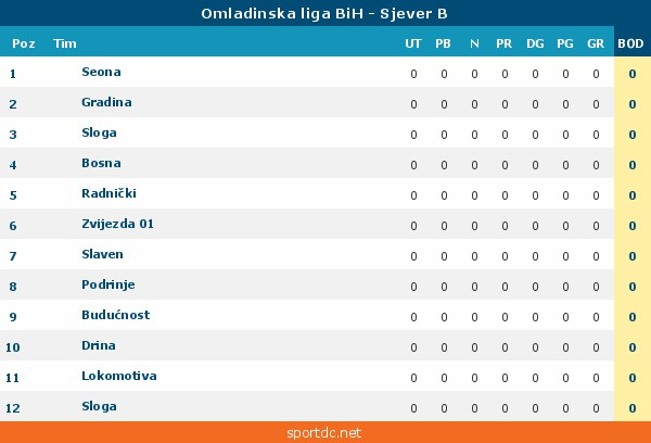 | Poz | Tim | Utak | Pob | Ner | Por | Bod | |