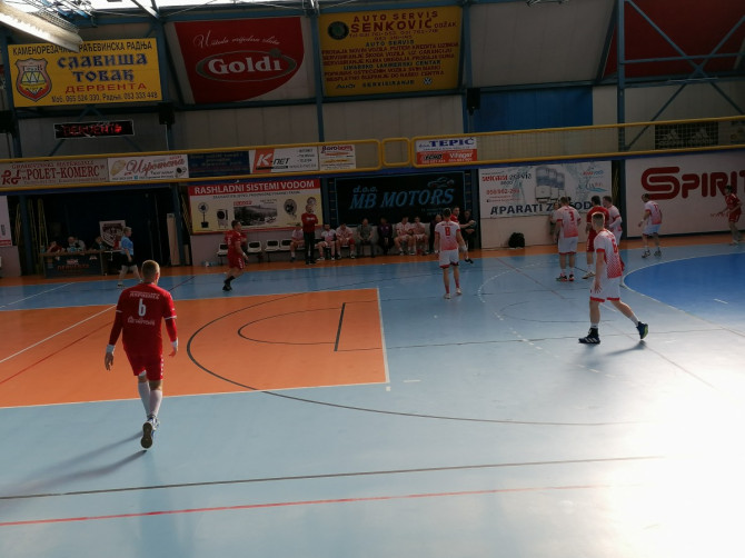 Pitanje pobjednika u Derventi nije se postavljalo ni jednog trenutka. Veću priliku za igru u ovom meču dobili su igrači koji su tokom prvenstva imali manju minutažu i oni su je opravdali. Domaći su biili u egalu do 10.minuta kada Sloga sa dva uzastopna gola vodi rezultatom 6:4. U 18.minutu Derventa je imala dva gola zaostatka 10:12. Onda slijedi serija Sloge od 4:0 i velikih šest golova prednosti 16:10 (22.minut). Do poluvremena su prednost uvećali na 23:15.