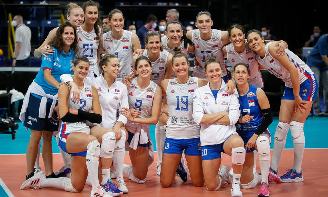 Ženska odbojkaška reprezentacija Srbije, aktuelni svjetski i dvostruki uzastopni evropski prvak i trećeplasirana na OI, plasirala se u osminu finala Evropskog prvenstva u Beogradu sa maksimalnim učinkom, pošto je večeras u beogradskoj dvorani "Arena" u poslednjem meču grupne faze posle velike borbe i nakon 124 minuta igre savladala Rusiju sa 3:2 po setovima 25:22, 25:19, 16:25, 24:26, 15:10.