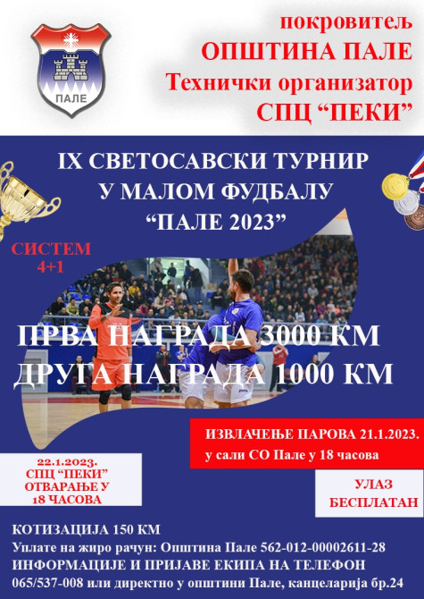 Tradicionalni "Svetosavski turnir" u futsalu na Palama igraće se ove godine po deveti put.
