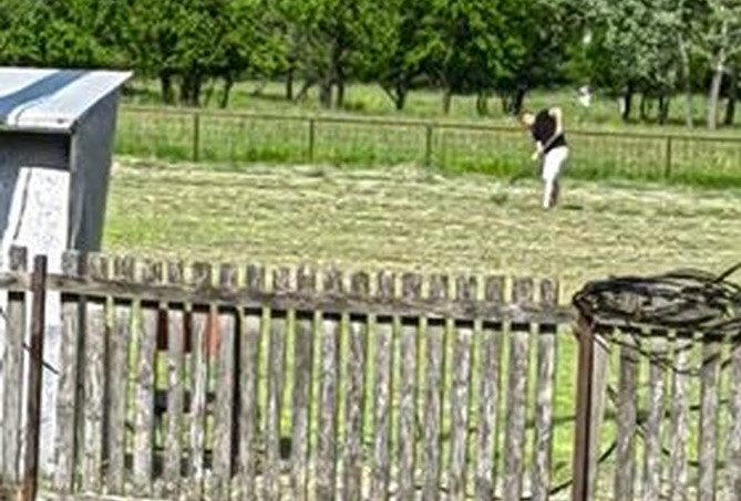 Teren je bio pokošen, ali nije i pokupljena trava pa se 10-tak minuta prije početka prionulu na posao.