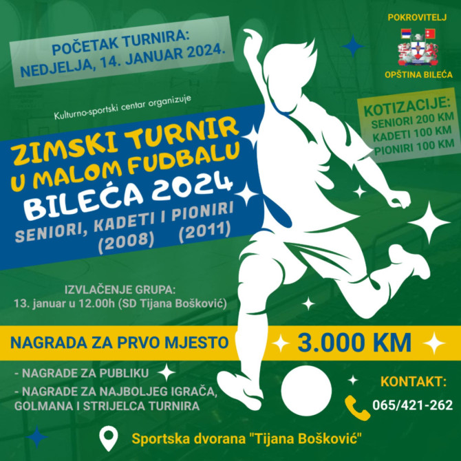 Turnir koji okupi ekipe iz Hercegovine i Crne Gore počinje 14. januara u organizaciji Kulturno-sportskog centra i pod pokroviteljstvom opštine Bileća.
