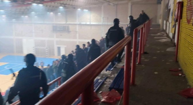 Na humanitarnoj rukometnoj utakmici između RK Bijeljina i beogradske Crvene Zvezde u Bijeljini večeras je izbila tuča navijača u kojoj ima povrijeđenih, među kojima je i jedan rukometaš.