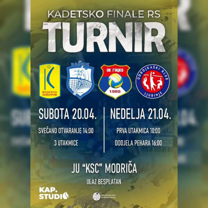 U subotu i nedelju u Modriči biće održan finalni turnir za prvaka Republike Srpske u konkurenciji kadeta igrači rođeni 2006. godine i mlađi.