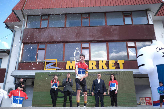 Poslije mnogo uzbuđenja, guranja u ciljnoj ravnini, gledanja foto-finiša na drugoj etapi trke „Beograd - Banjaluka“ koja je vožena od Zvornika do Vlasenice, trijumfovao je Davide Toneati, koji nosi majicu slavnog kazahstanskog tima Astana.