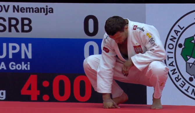 Imao je Nemanja problema sa desnim okom koje je krvarilo, ali nije dozvolio da ga to omete u finalnoj borbi protiv Tađime. Bio je ovo sudar dva stila džudoa, ali dosta oprezno i sa dovoljnim respektom prema rivalu da znaju da ih svaka i najmanja greška može koštati. Na polovini borbe i jedan i drugi borac dobijaju po shido, sa kojim nastavljaju borbu, te se vjerovatno i očekivano ide u zlatni poen.