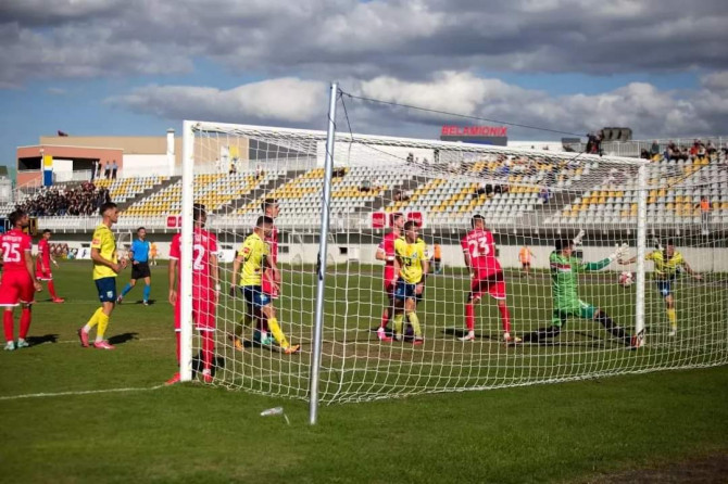 Trenutak kad Harun Alibegović postiže pogodak FOTO: FK Rudar Prijedor