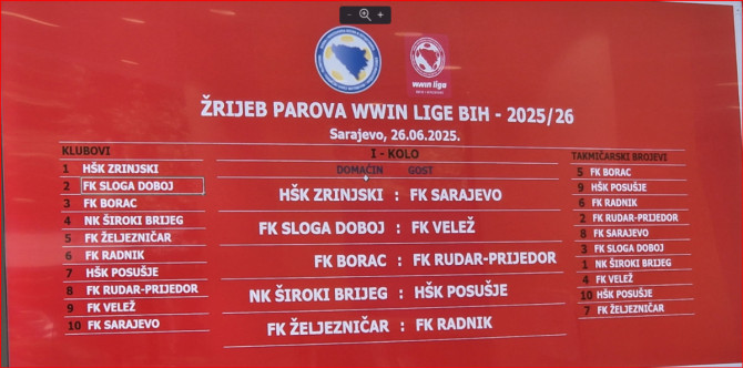 Danas su u prostorijama Fudbalskog saveza Bosne i Hercegovine izvučeni takmičarski brojevi za VVIN ligu seniora, jun0ire, kadete i pionire.