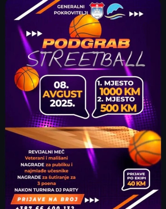 Uz podršku opštine Pale i Turističke organizacije grada Istočnog Sarajeva, šesti po redu turnir u uličnom basketu u Podgrabu biće održan 8. avgusta 2025. godine.