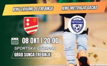 U sportskoj dvorani „Olimp Grad Sunca“ u Trebinju, u srijedu 8. oktobra sa početkom u 20 časova, biće odigrana prijateljska utakmica između KMF Zahumlje Trebinje i KMF Metohija Gacko.