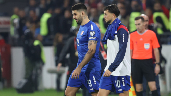 Kapiten Aleksandar Mitrović utučen posle poraza od Albanije (0:1) u kvalifikacijama za Mondijal 2026: