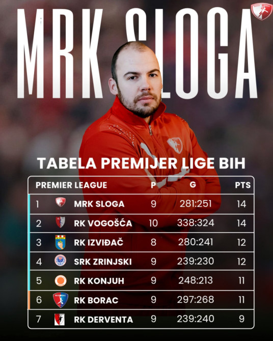 Rukometaši Sloge zabilježili su veliku pobjedu protiv Vogošće i izbili na prvo mjesto prvenstvene tabele. Sloga je pružila vrhunsku igru.