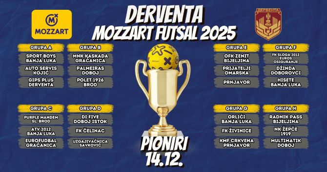Pioniri MNK Kaskada Gračanica nastavili su niz sjajnih rezultata i još jednom potvrdili kontinuitet uspješnog rada kluba u mlađim kategorijama. Na izuzetno jakom turniru Derventa Mozzart futsal 2025, održanom u Derventi, mladi fudbaleri Kaskade osvojili su prvo mjesto u pionirskoj konkurenciji, bez ijednog poraza, uz impresivnu gol-razliku 19:4.