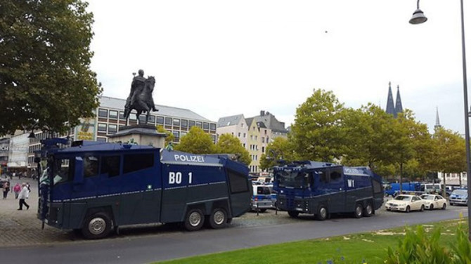 Stadion je od mesta okupljanja udaljen oko 5 kilometara pa ne čudi pojačano prisustvo policijskih snaga na ulicama Kelna.
