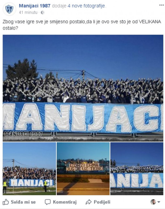 Oni su uz slike sa današnjeg meča ostavili poruku "Zbog vase igre sve je smijesno postalo,da li je ovo sve sto je od VELIKANA ostalo?"