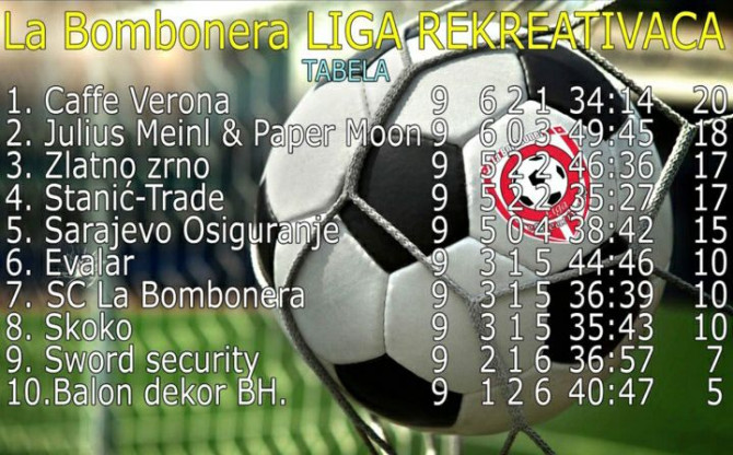Završen je jesenji dio sezone druge po redu Lige rekreativaca u Sportskom centru ''La Bombonjera'' u Istočnom Sarajevu.
