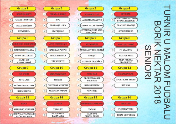 Danas su izvučene grupe za tradicionalni turnir u malom fudbalu ''Borik Nektar 2018''.