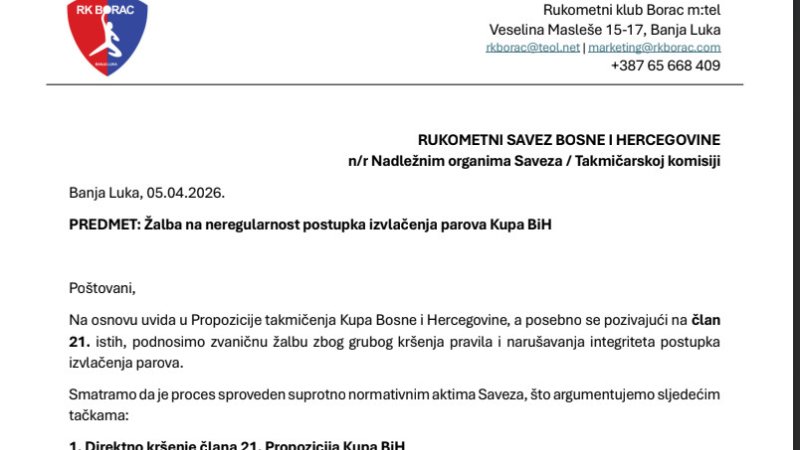 Na rukometnoj utakmici Bosne i Hercegovine i Kosova u Tuzli dogodila se scena koja je izazvala burne reakcije širom regiona. Navijačka grupa „BHFanatikosi” razvila je transparent sa porukom „Dobrodošli igrači nezavisnog Kosova”, što je izazvalo zaprepašćenje dijela javnosti i otvorilo pitanje odgovornosti organizatora i navijača. Isticanje...