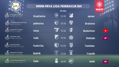 Parovi 13. kola WWIN Prve lige Federacije BiH:   NK STUPČANICA - FK IGMAN  (Olovo, 16.11.2025. - 13:30 sati) Glavni sudija: Imšić Ismet (Kalesija) Sudija asistent 1: Trklja Edis (Sarajevo) Sudija asistent 2: Ibrahimović Adnan (Brčko) Četvrti sudija: Heljić Senad (Sarajevo) Posmatrač suđenja: Bandić Gojko...