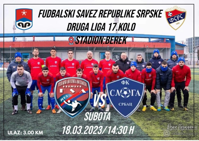 Prijedor. Stadion: Stadion Poljana. Gledalaca: 150. Sudije: Petar Tepić (Čelinac) [Glavni], Igor Pašić (Banja Luka) [Pomoćnik], Nemanja Šestić (Banja Luka) [Pomoćnik], Strijelci: Milan Kovačević 59 (FSA), a Aleksandar Kondić 7. Vedran Nježić 45+2, Slaven Karamehić 90+2 (Sloga)