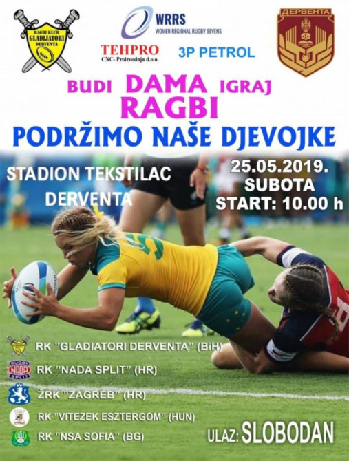 Ragbi klub „Gladijatori“ iz Dervente sa svojom ženskom selekcijom narednog vikenda domaćin je jednog od turnira u Regionalnoj ragbi ligi (Regional Rugby Championship-RRC), gdje učestvuju ekipe iz Bugarske, Hravatske i Mađarske, dok će one biti jedine predstavnice BiH.