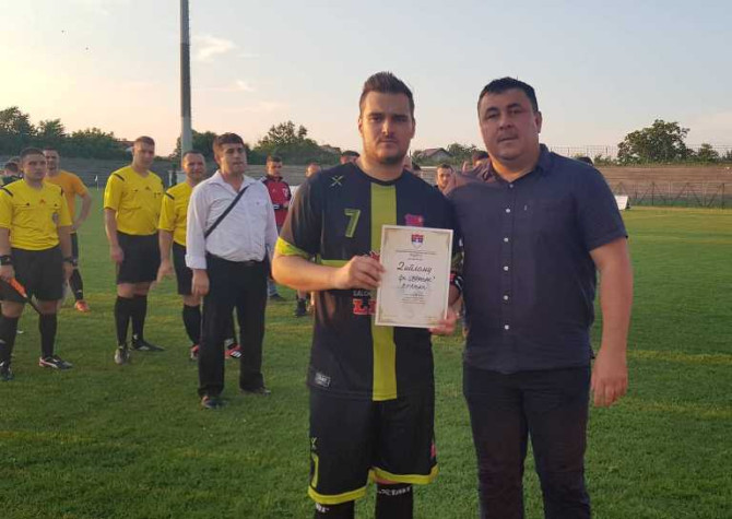 Miodrag Đurić, predsednik OFS Modriča, uručio je priznanje Vranjaku za učešće u finalu, a pobednički pehar ekipi Sloge.