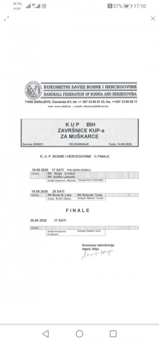 DOBOJ - Narednog vikenda u Doboju odigrat će se završnica Kupa Bosne i Hercegovine za ruometaše. Određena su službena lica.