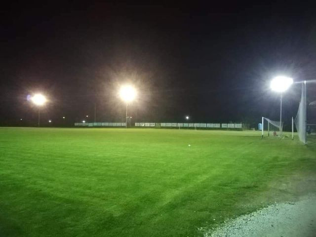Tu su i reflektori za noćni trening i igranje mečeva u kasnim satima. Čestitamo klubu na održavanju terena.