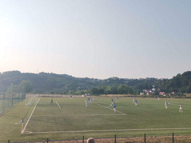Već u drugoj minuti Famos dolazi do vodstva. Ognjen Radović je svojom brzinom probio po desnoj strani odbranu Hrasničana, ubacio u sredinu za Danela Blažića koji pogađa za 1:0.