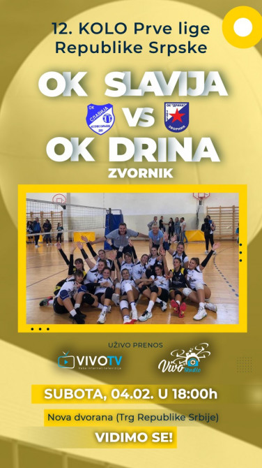 Odbojkašku  utakmicu između ekipe „Slavije“ i OK „Drine“  iz Zvornika gledajte uživo putem Vivo Studio profila na Facebook i YouTube platformama.