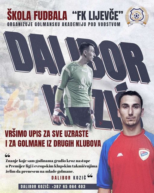 Član Regionalne lige Republike Srpske grupa "Zapad", FK Lijevče iz Nove Topole, organizuje golmansku akademiju pod vodstvom proslavljenog premijerligaškog golmana Dalibora Kozića.