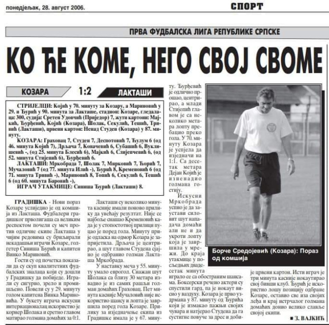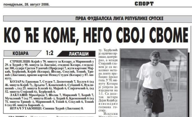Pred ovu utakmicu u gostujućem klubu su, na svojoj zvaničnoj stranici, podsjetili na duel iz avgusta 2006. godine, kada su Laktašani pobijedili rezultatom 2:1 u gradu na Savi, a pogotke su postigli Vinko Marinović i Siniša Đurić i to u 90. minutu. Obojica su ponikli u Kozari, a tada su donijeli trijumf Laktašanima koji su te sezone bili šampioni Republike Srpske i izborili plasman u Premijer ligu BiH.