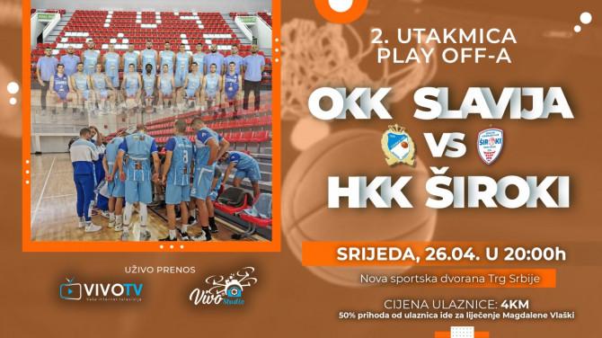 Košarkašku utakmicu između ekipe „Slavije“ i HKK „Široki“ gledajte uživo putem Vivo Studio profila na Facebook i YouTube platformama.