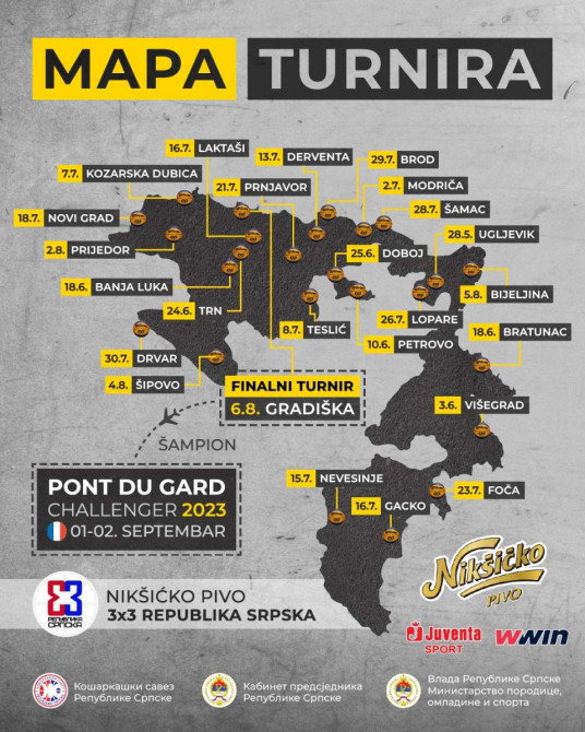 Sezona Nikšićko pivo 3x3 lige Republike Srpske koja se ove godine igra u čak 25 gradova/opština počinje 28. maja, kada se igra turnir u Ugljeviku, dok je finalni zakazan za 6. avgust u Gradišci.