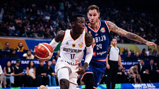 Prvo poluvreme počelo je trojkom Stefana Jovića, a drugo poenima Denisa Šrudera. Sjajna odbran na Milutinovu donosila je sigurnost Nemcima, a nama oduzela jedno od najjačih oružja, pa su Panceri u 25. minutu došli do najveće prednosti – 55:51. Najbolji centar Srbije prve poene postigao je upravo polovinom treće etape sa linije slobodnih bacanja. Šruder nastavlja sa dobrom igrom i povećava na 59:53, Bonga faulira Milutinova, ali se pištaljka nije čula. U polukontri Bogdanović faulira Bongu, a Milutinov dobija tehničku i rival stiče najveću prednost – 62:53. Posle promašaja Davidovca sa linije bacanja Mo Vagner vodi Nemce na dvocifrenu prednost 64:53. Gudurić smanjuje ispd deset, ali Franc Vagner uzvraća trojkom. Petrušev daje koš, ali stariji Vagner ispravlja svoj promašaj za 69:57.