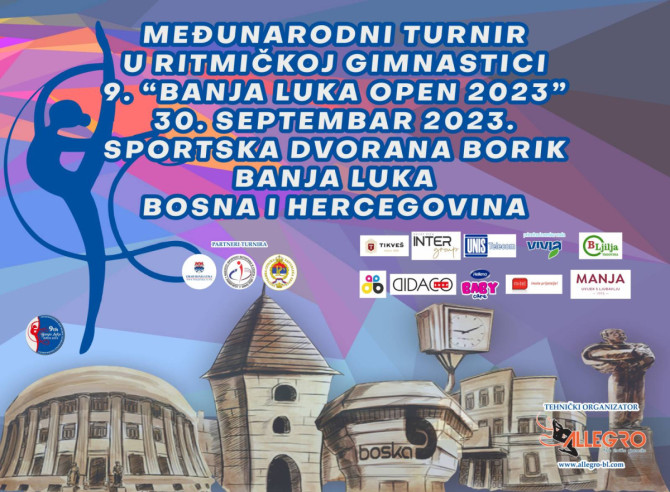 Klub ritmičke gimnastike Allegro iz Banjaluke organizacije međunarodno takmičenje u ritmičkoj gimnastici 9. Banjaluka OPEN, koji će se održati u subotu 30. septembra 2023. godine sa početkom u 8:00 časova u Sportskoj dvorani Borik u Banjaluci i trajaće do 22:00 časa.