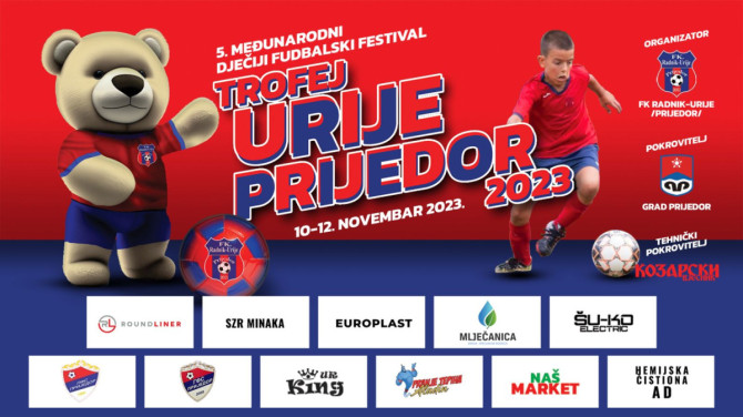 Fudbalski klub Radnik Urije organizovaće od 10. do 12. novembra ove godine peti međunarodni dkečiji fudbalski festival “Trofej Urije Prijedor” na kojem će nastupiti 11 klubova u dvije kategorije, dječaci rođeni 2013. i 2015. godine. Nastupiće više stotina dječaka i djevojčica, a za najbolje ekipe obezbjeđenje su nagrade, pehari, diplome i medalje.