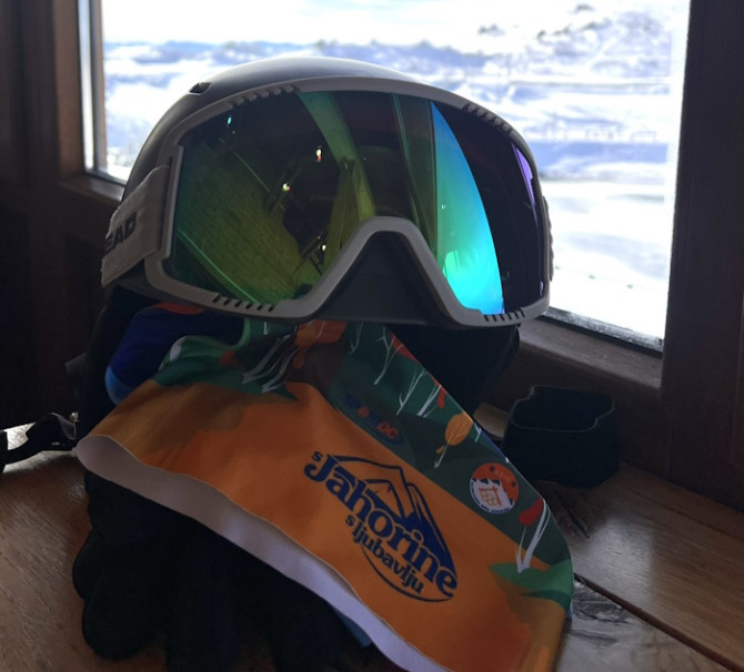 Snimanje smo uradili u Olimpijskom baru, onom donjem dijelu, ali prije polaska na planinu stigla mi je fotografija. Esma Kreso mi je poslala fotos priprema za izlazak na stazu. Tu je bandana emisije,a ona sa svojim klincima, blizancima, sinom i kćerkom je svakodnevno na padinama planine,