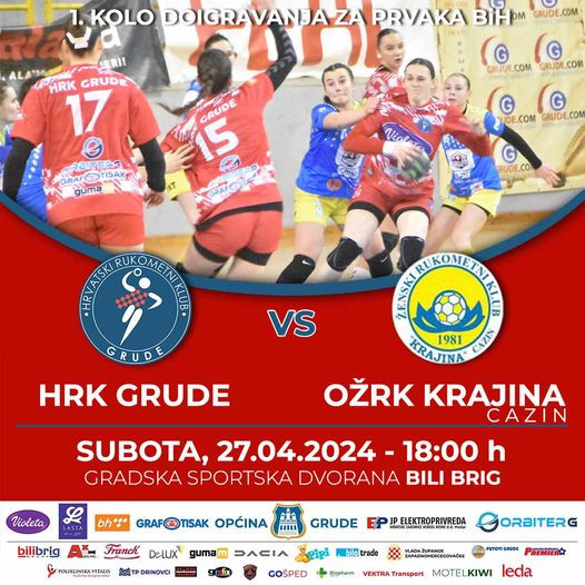 ŽRK Grude u subotu 27. aprila od 18:00 sati će odigrati meč  1. kola doigravanja za prvaka BiH za rukometašice.