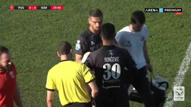 On je u jednom duelu dobio udarac, te je samo sjeo na teren i sačekao da uđe medicinska ekipa Igmana. Odmah je pokazano da nije u mogućnosti da nastavi utakmicu, te je u 30. minuti šansu dobio debitant u WWIn ligi Igor Rončević.