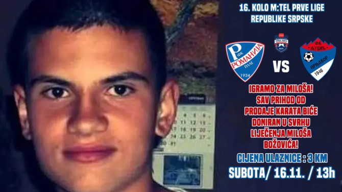 U posljednjoj domaćoj utakmici u ovoj godini Romanije se priključila i u humanitarnoj akciji za pomoć Milošu Božoviću, pa će sav prihod od ulaznica po cijeni od 3 KM ići za pomoć liječenju Miloša Božovića.