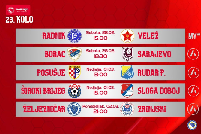 Inače, 23. kolo otvaraju Radnik i Velež koji će igrati u subotu od 16 sat. Glavni sudija ovog meča je Antonio Tomić (Kreševo), a pomočnici su Emir Zahiragić (Sarajevo) i Dženan Milić (Sarajevo). Četvrti sudija je Amin Efendić (Sarajevo), dok su u VAR sobi Ernis Džemidžić (Goražde) i Stegan Tešanović (I. Sarajevo).