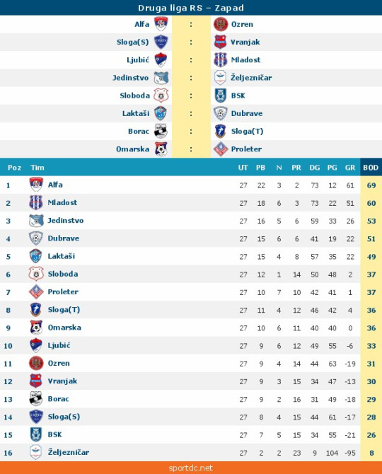 Naravno, do kraja će ta bitka biti neizvesna ,a umnogome će zavisti i od timova koji budu napušatli Prvu ligu Republike Srpske, Od 17 časova i 30 minuta budite sa nama. Imaćemo izveštače sa nekih drugoligaških okršaja.