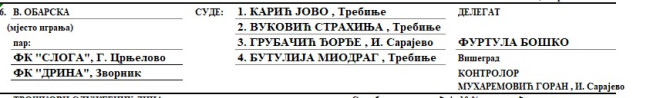 Na utakmicu Sloga Gornje Crnjelovo - Drina Zvornik, barem prema okačenom delegiranju na sajtu Fudbalskog saveza Republike Srpske delegiran je Miodrag Butulija, šezdeset dvogodišnji bivši sudija koji je danas kontrolor na Drugoj ligi Republike Srpske. Naravno, neće on biti četvrti sudija, već će to biti Danko Butulija, dok će Miodrag kao kontrolor u Čajniče.
