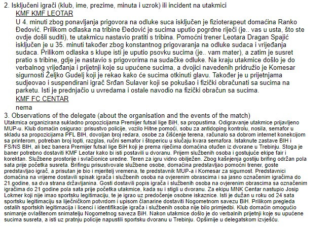 Ni službena lica nisu zadovoljni domaćinima, a sve su to napisali u izvještaju poslije utakmice.