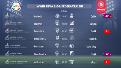 Komisija za takmičenje i Komisija za sudije i suđenje NS FBiH izvršili su delegiranje službenih lica za utakmice 3. kola WWIN Prve lige Federacije BiH. Parovi 3. kola WWIN Prve lige FBiH: FK SLOBODA - NK ČELIK (Tuzla, 06.09.2025. - 18:00 sati) MOJA TV Glavni sudija: Ćatibović Deni (Sarajevo) Sudija asistent 1: Parla Eldar (Sarajevo)...